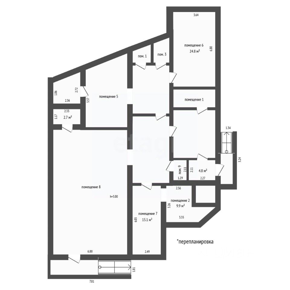 Срочная продажа! Помещение в центре города! Входная группа выходит на улицу Ленина. Прекрасно подойдет под кафе, кальянную. 2 входные группы, одна из них во двор. Отдельная приточная вентиляция . Электрическая мощность 16 кВт. Есть много подсобных помещений. Есть возможность оборудовать 2 вип помещения. В планировках помещения 2 верные планировки, одна с квадратурой общей, вторая с перепланировкой: Помещение 1-гардеробная Пом. 2 - котельная Пом. 3- сан узел Пом. 4- подсобное Пом. 5- кухня Пом. 6- отдельный зал ( вип комната) Пом. 7- отдельный зал ( вип комната) Пом. 8- основной зал Пом. 9- сан узел