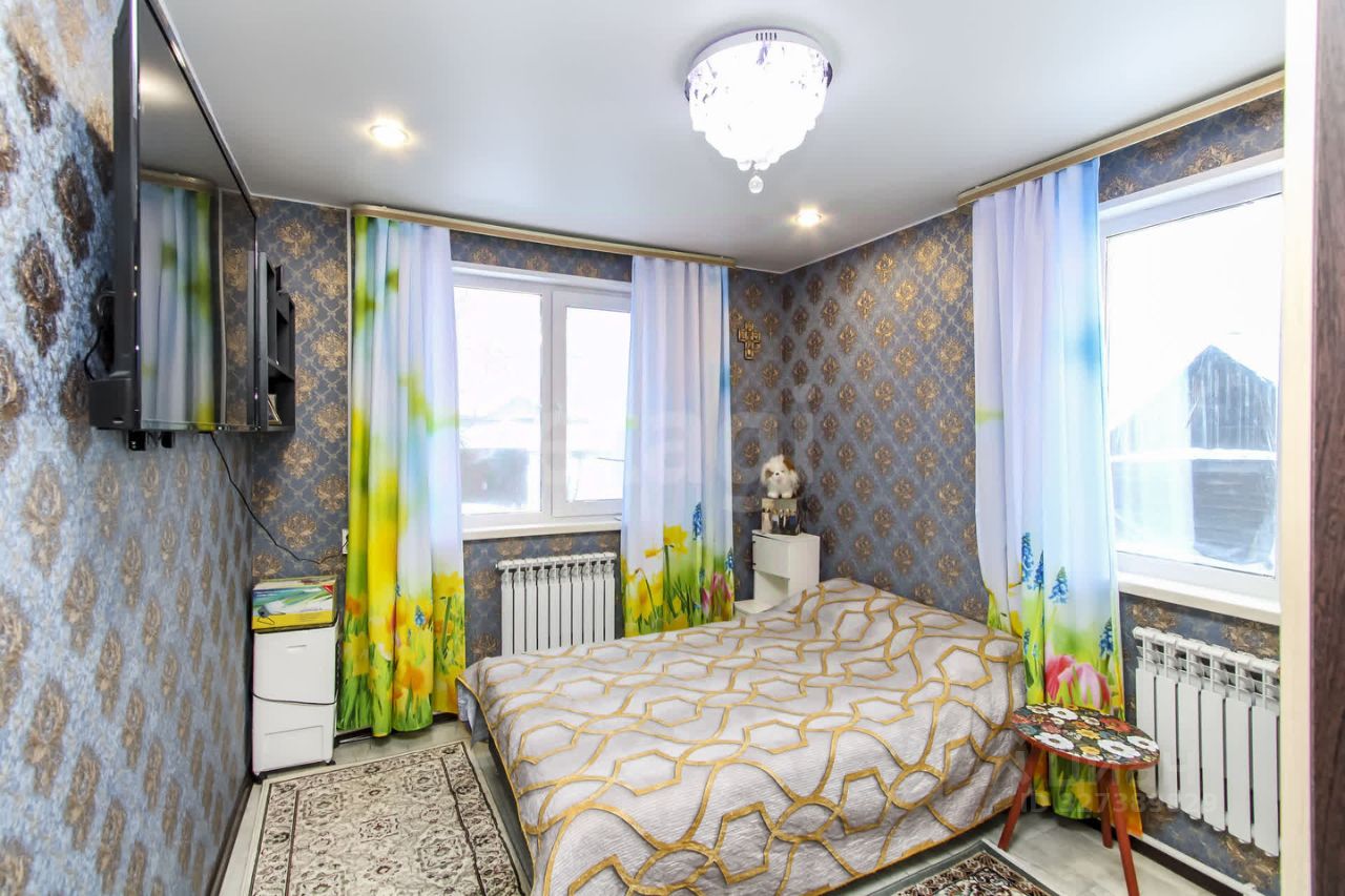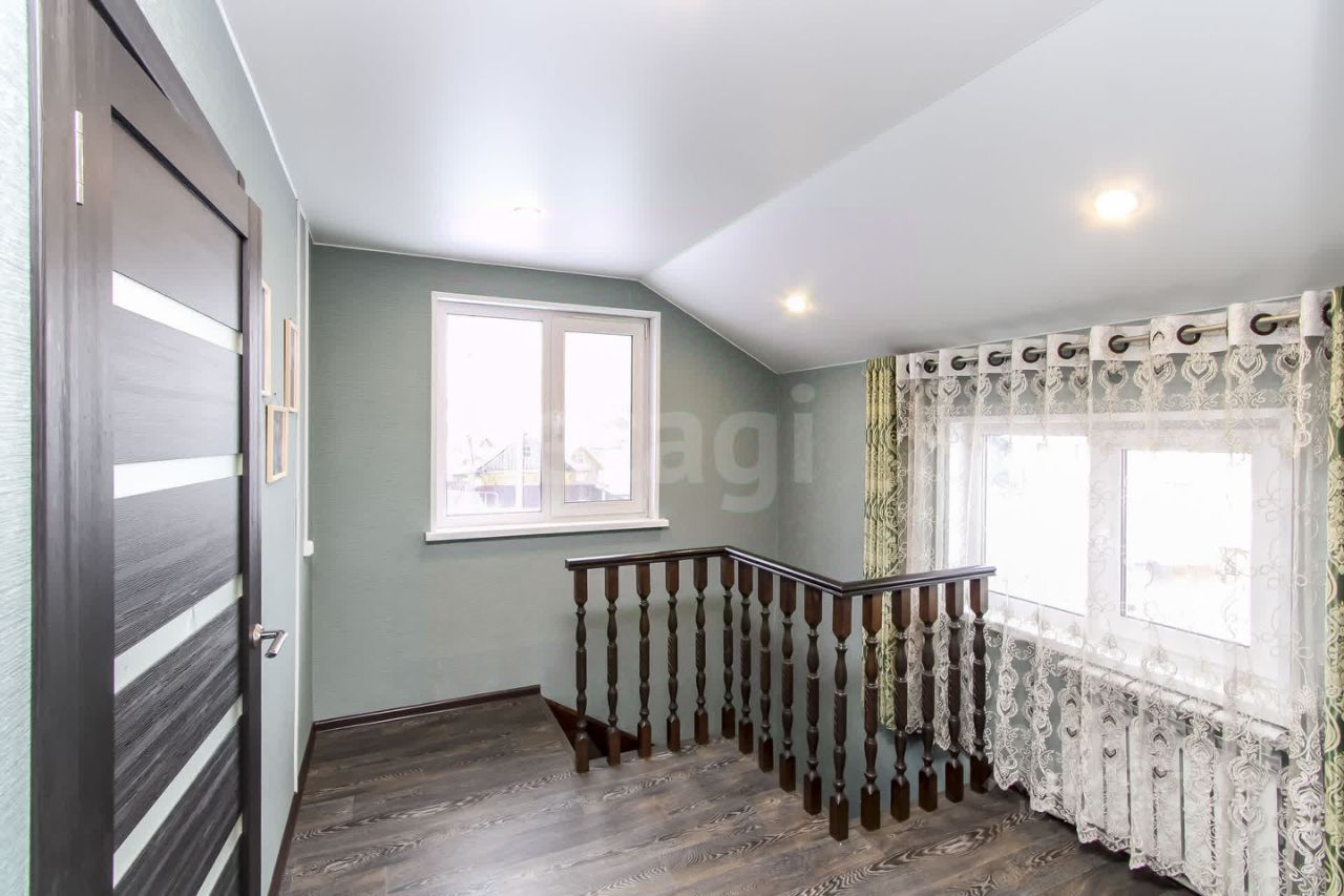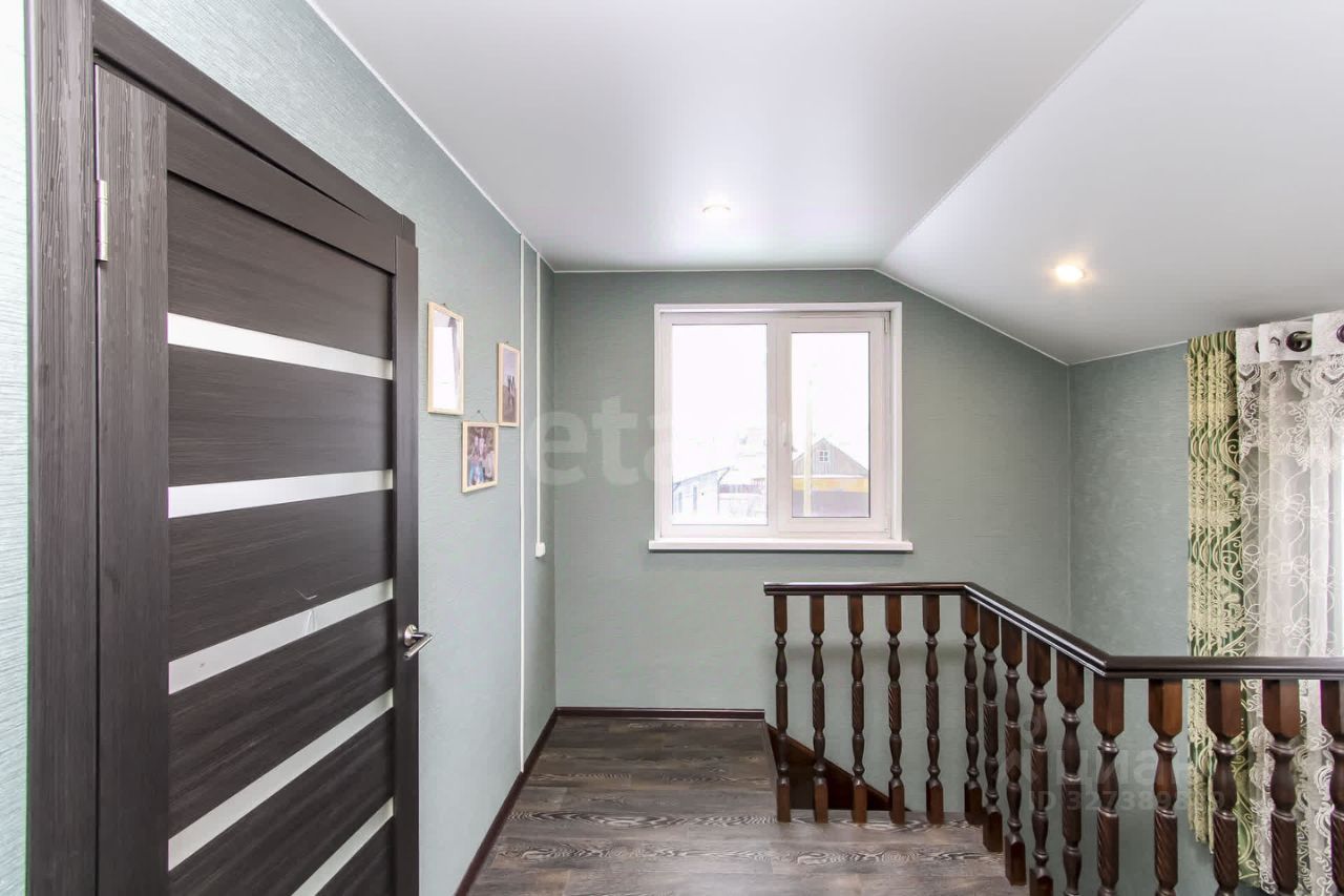В доме 5 комнат, на первом этаже кухня, гостинная, спальня, санузел, на втором три спальни. Все коммуникации заведены: газовое отопление, центральное водоснабжение, электроснабжение, септик. На кухне и в коридоре теплый пол под кафелем. Ремонт делали чуть более года назад. Санузел в доме. Кухонный гарнитур остается.