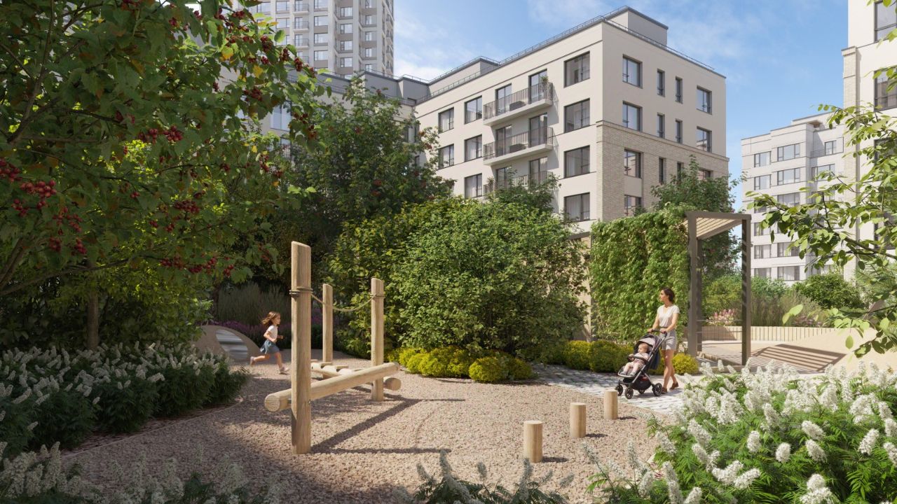 С севера на юг территорию будет пронизывать пешеходный бульвар. Мы мыслим это общественное пространство как главный центр притяжения. На нём будут сосредоточены основные детские игровые и спортивные зоны, места для встреч и спокойного отдыха. Он также сыграет роль мостика, ведущего к другим нашим проектам — ''Европейскому кварталу'' и ''Дому у озера''.
