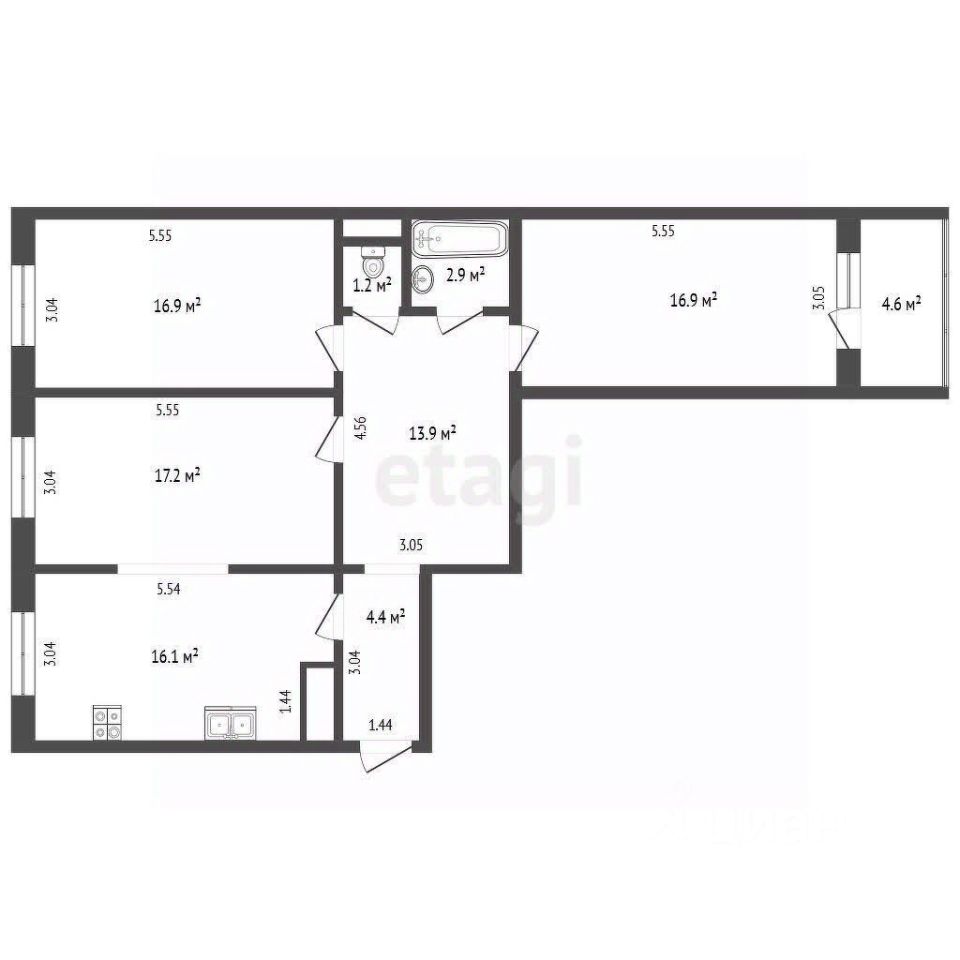 Кухня площадью 16.1 кв.м. соединена с гостиной, что позволит вам готовить вкусные ужины и одновременно общаться с близкими, не изолируя себя от семейного тепла. Просторный объединенный санузел добавляет удобства в повседневной жизни.