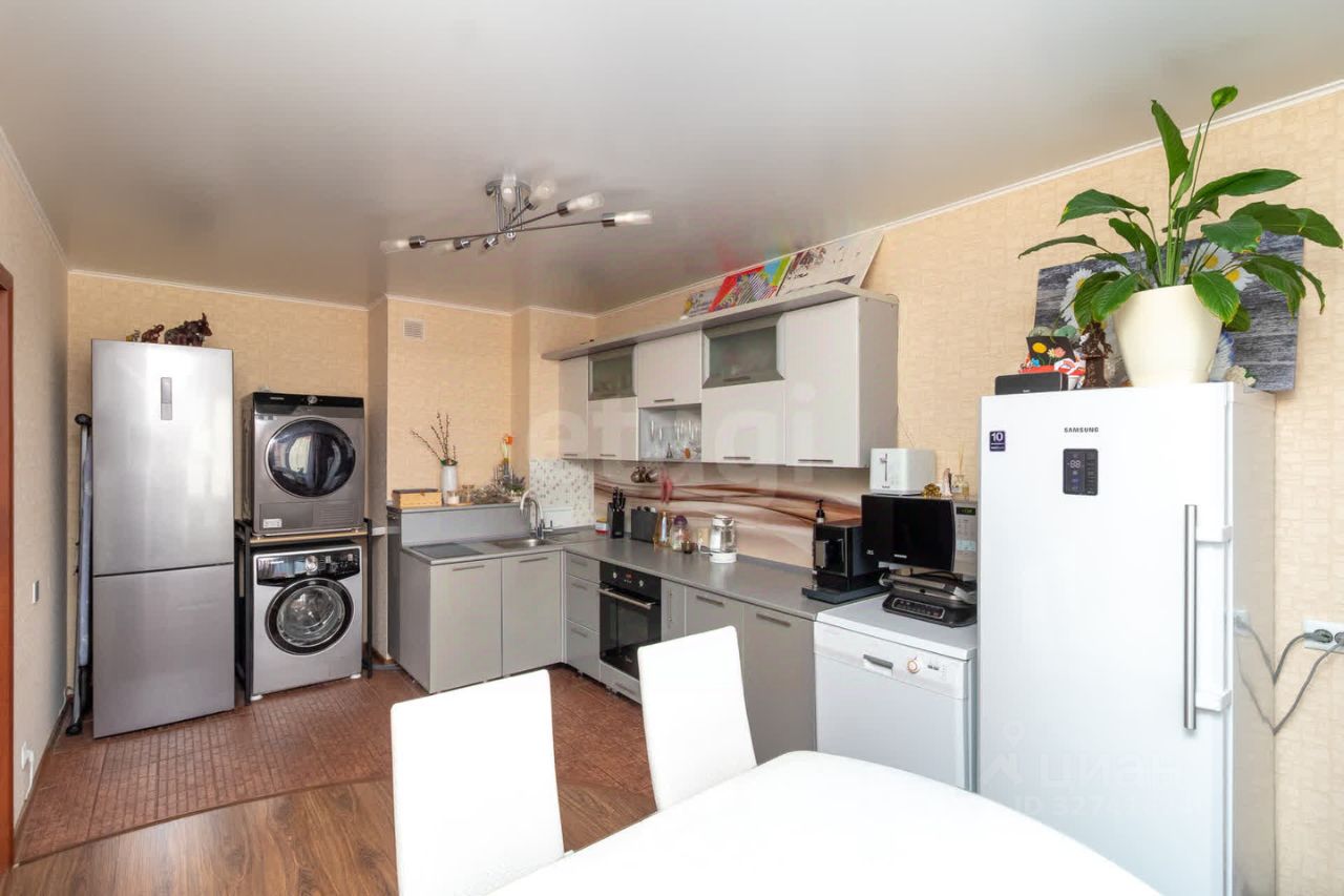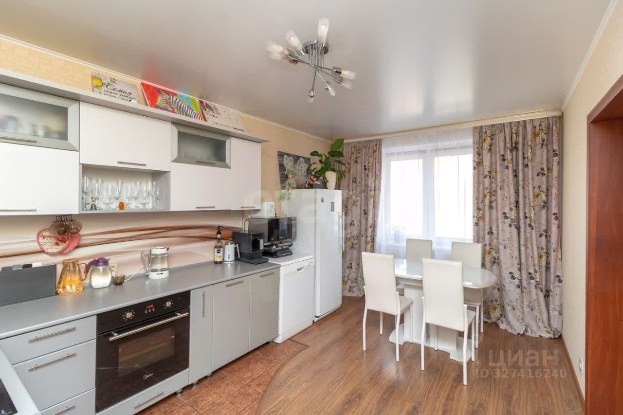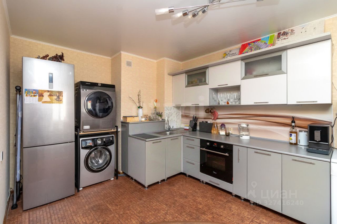 Квартира выполнена в современном стиле с качественным ремонтом: стены оклеены стильными обоями, на полу уложен прочный ламинат 33-го класса В качестве приятного бонуса новым владельцам достанется шикарный кухонный гарнитур и вместительный шкаф-купе — идеальное решение для хранения вещей!