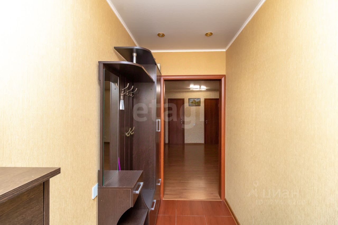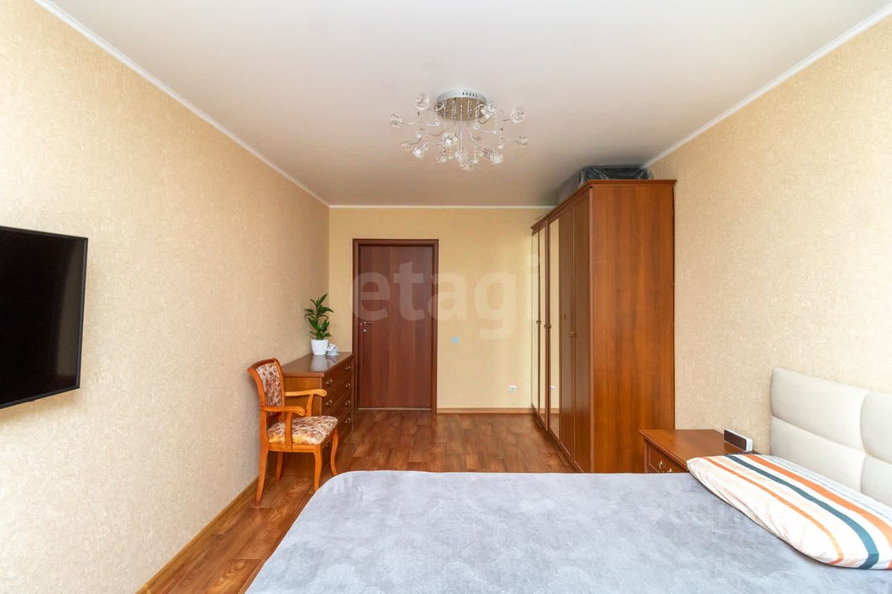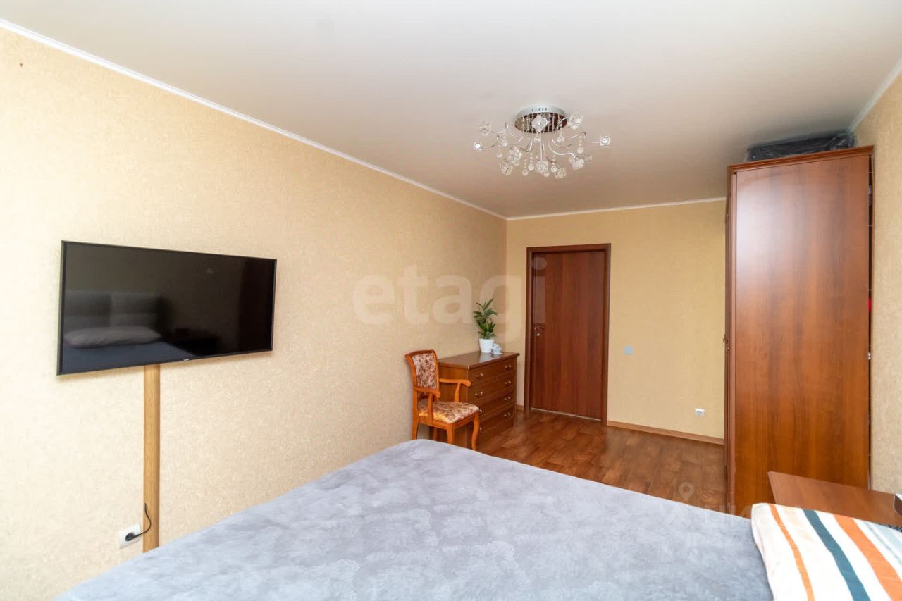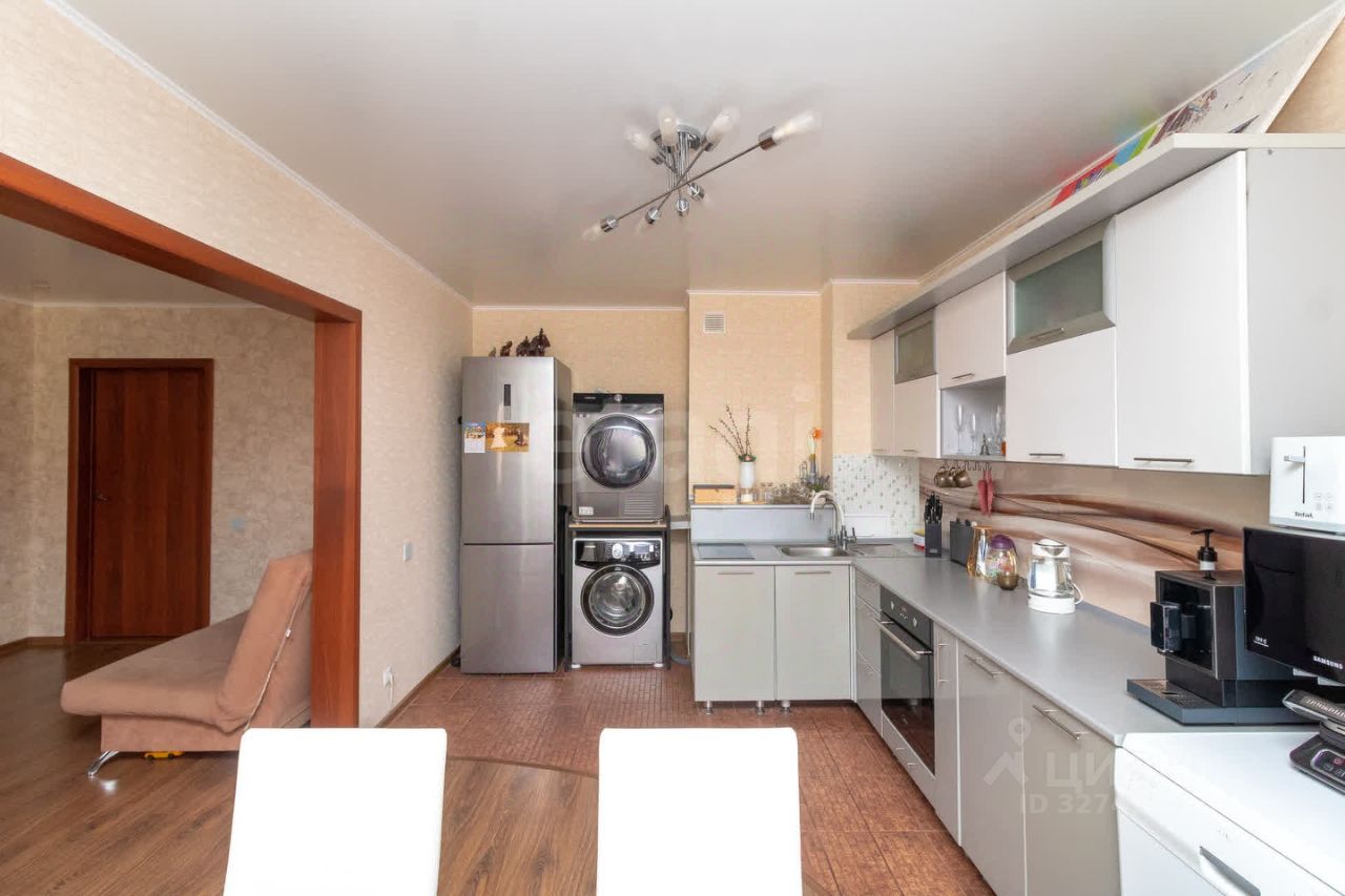 Квартира выполнена в современном стиле с качественным ремонтом: стены оклеены стильными обоями, на полу уложен прочный ламинат 33-го класса В качестве приятного бонуса новым владельцам достанется шикарный кухонный гарнитур и вместительный шкаф-купе — идеальное решение для хранения вещей!