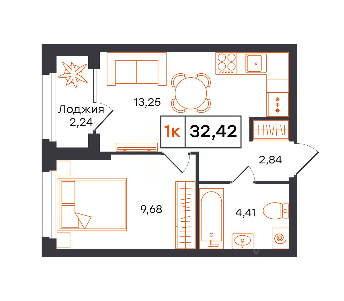 1-комн. квартира, сдается в предчистовой отделке в жилом комплексе Фатера. Фатера масштабный жилой квартал в уже развитом районе ''Дом Обороны''. Квартал возводят вдоль Полевой улицы. Будущие новоселы смогут проводить выходные в экопарке ''Затюменский'', до которого можно добраться всего за 5 минут. Недалеко расположена живописная набережная, по которой приятно и легко выйти к центру города. Архитектура Авторские фасады жилого квартала лаконичны и выполнены в природных оттенках благородных цветов: молочный, коричневый и графитовый. По вечерам квартал превращается в атмосферное место для прогулок за счет веерной архитектурной подсветки. Благоустройство Благоустройство выполнено по ландшафтному дизайну. В проекте предусмотрены: закрытая дворовая территория под видеонаблюдением, спортивные и детские площадки, зоны отдыха для взрослых. Безбарьерный вход в дизайнерские парадные, с теплым тамбуром и мягкими зонами ожидания, дизайнерское освещение, 2 пассажирских и 1 грузопассажирский лифт, зона хранения спортивного инвентаря.