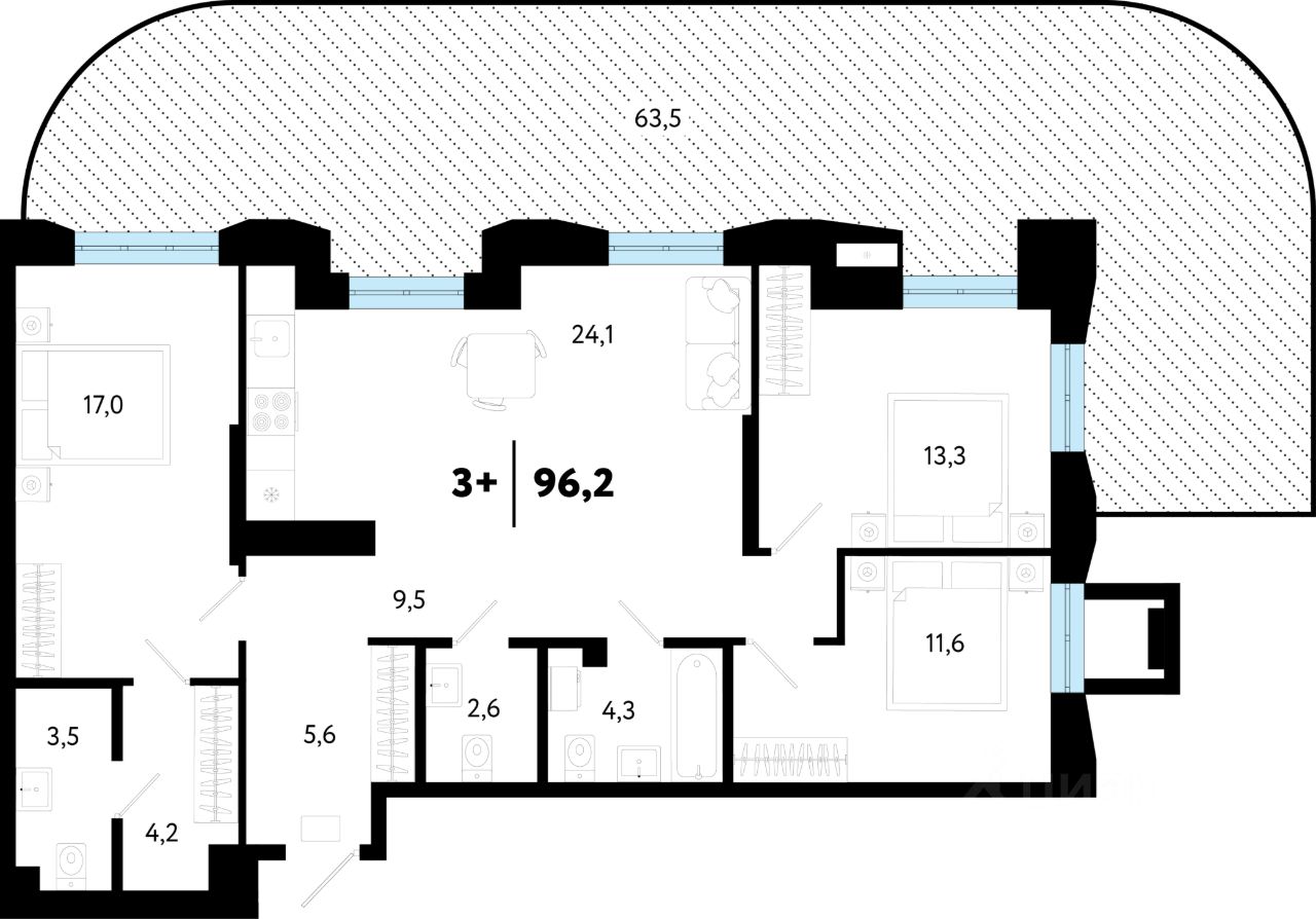 продам 3-к, Судостроителей, 5611 870 000 ₽