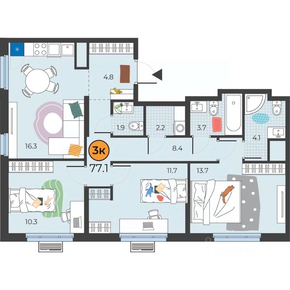 продам 3-к, Федюнинского, 310 616 672 ₽
